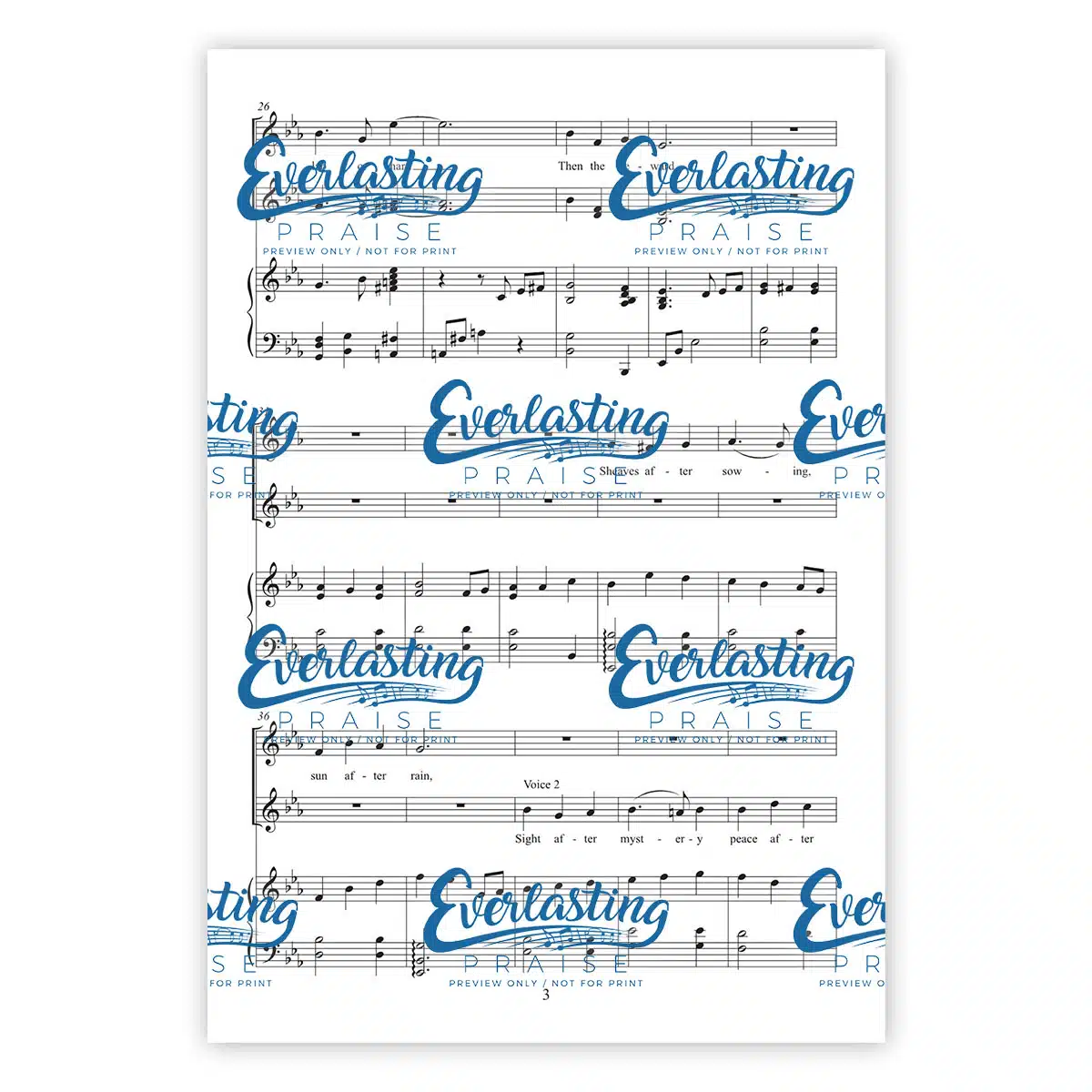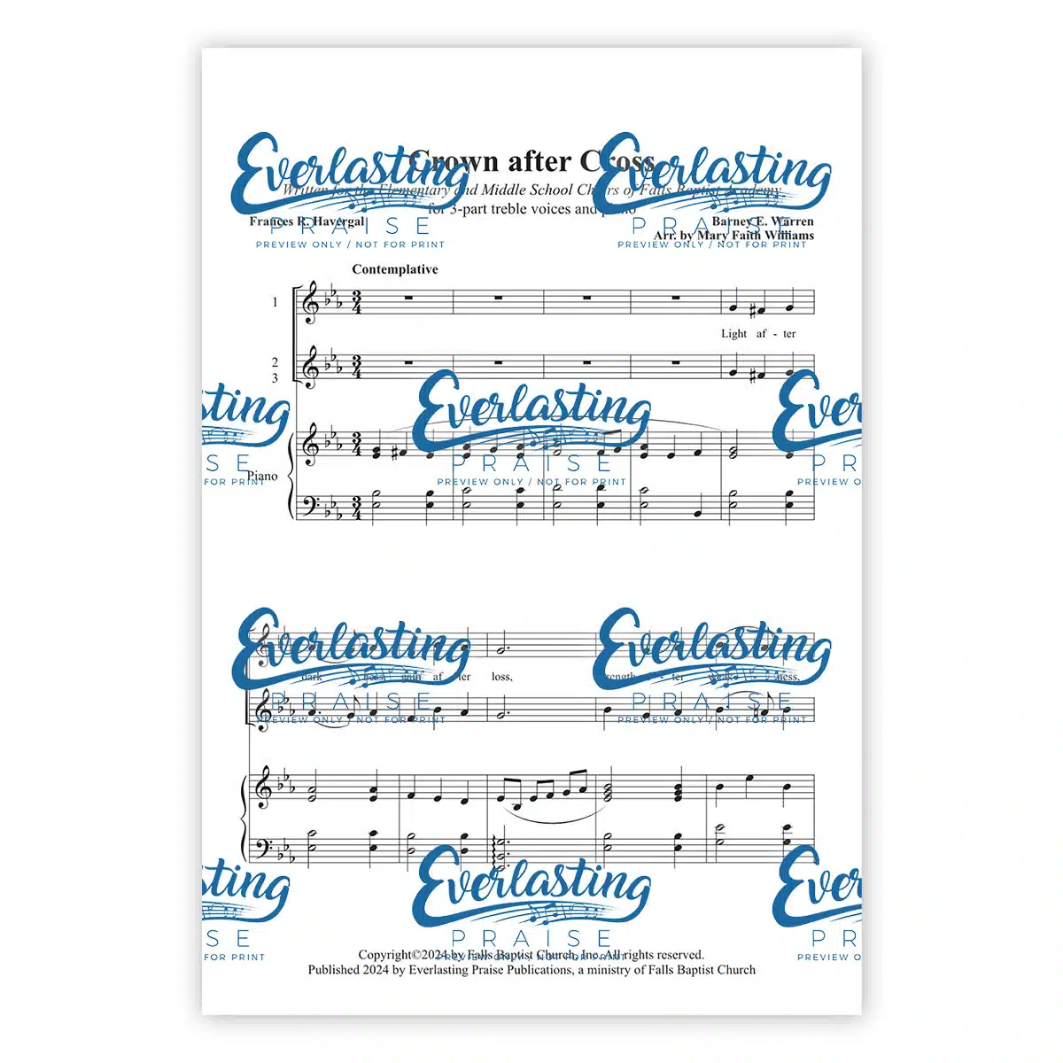 This simple, thought-provoking arrangement is for 3-part treble voices. The subdued piano accompaniment allows the richness of the text to unfold beautifully in the vocals.