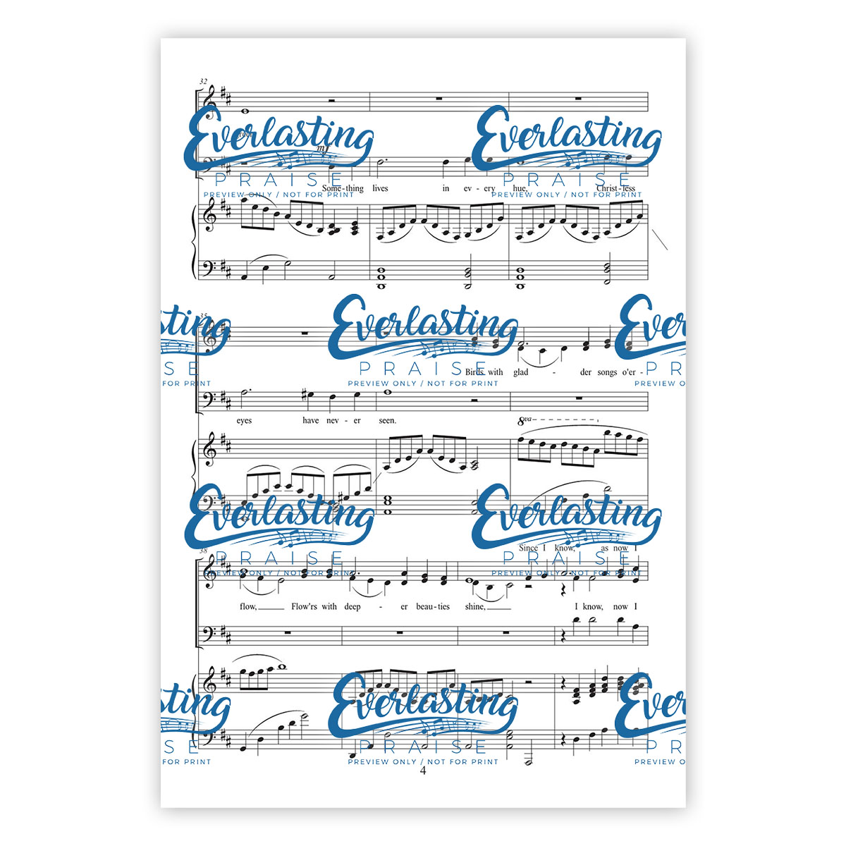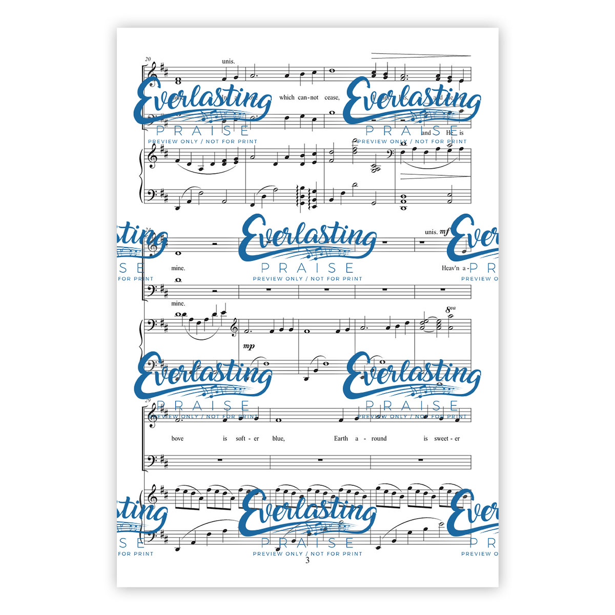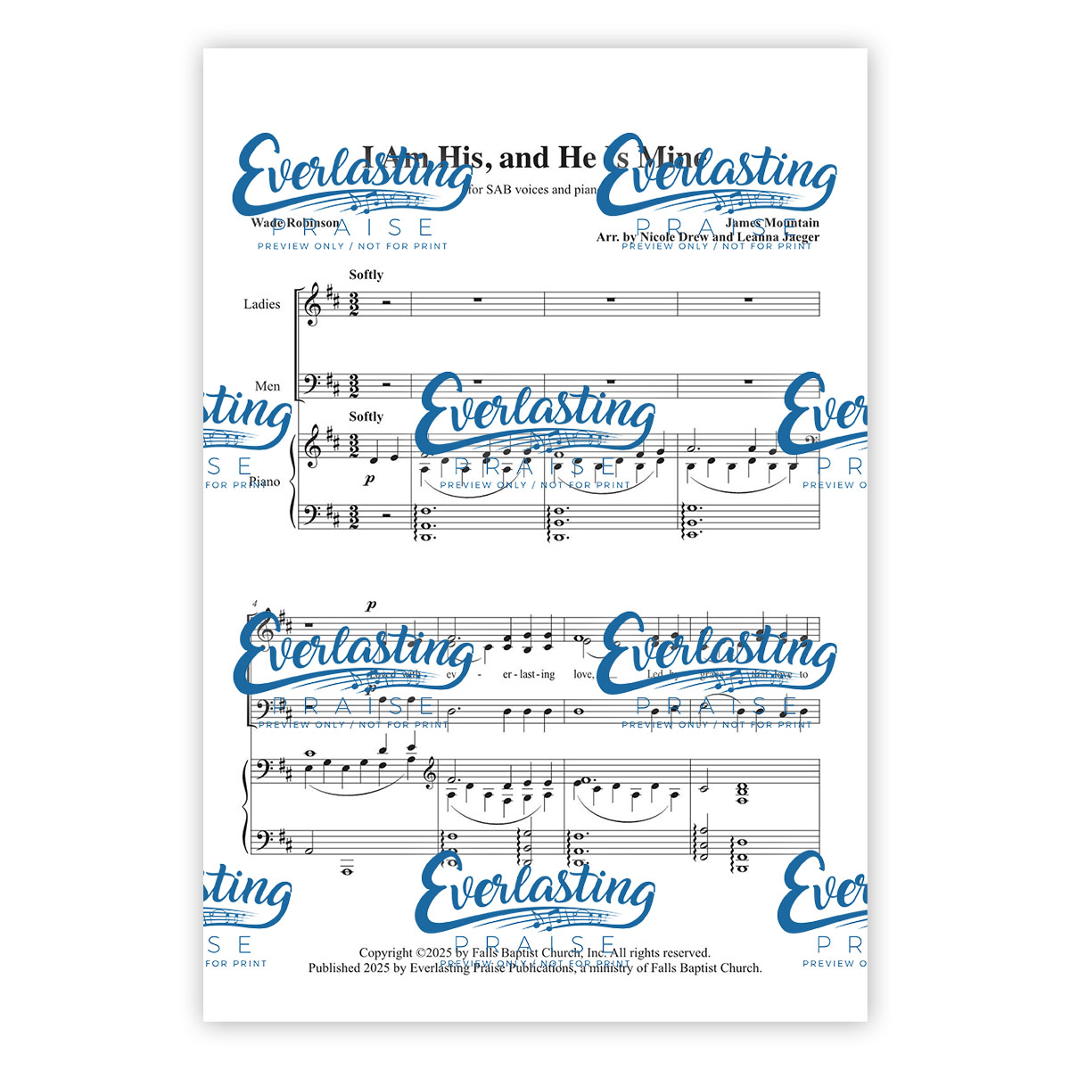 This lovely SAB arrangement is perfect for church choirs, as well as small vocal groups! A flowing piano accompaniment creates a soft and gentle mood. Strong confident chords in the final verse settle into the same flowing motif to end the piece.